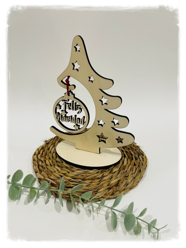 Árbol de Navidad de madera con bola personalizada.