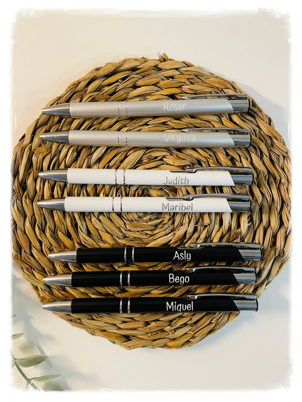 NOTA: El bolígrafo de color BLANCO (únicamente el blanco) tiene grabado el símbolo de reciclado (ver última foto)