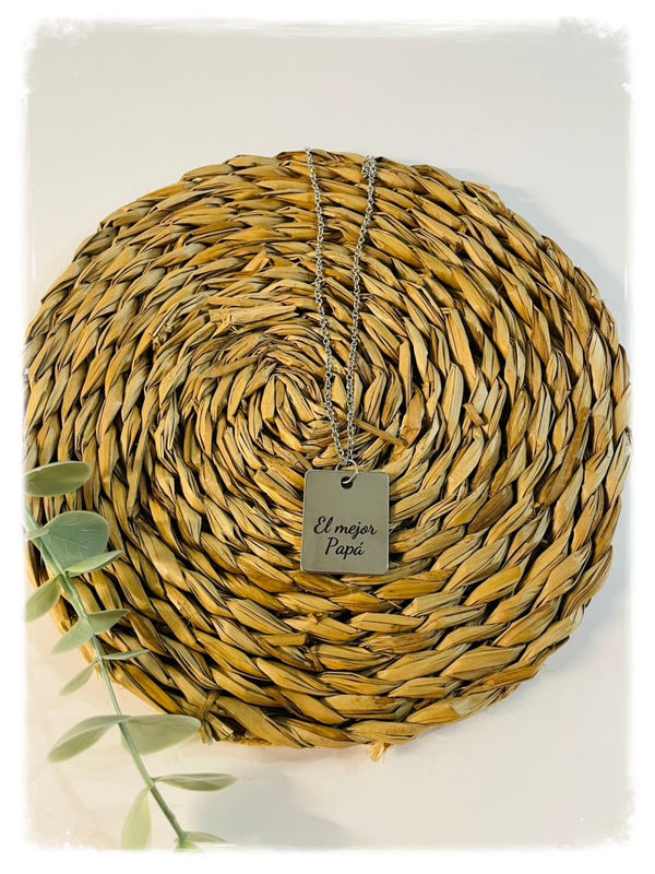 Colgante unisex de acero inoxidable rectangular, personalizado con grabado a láser.