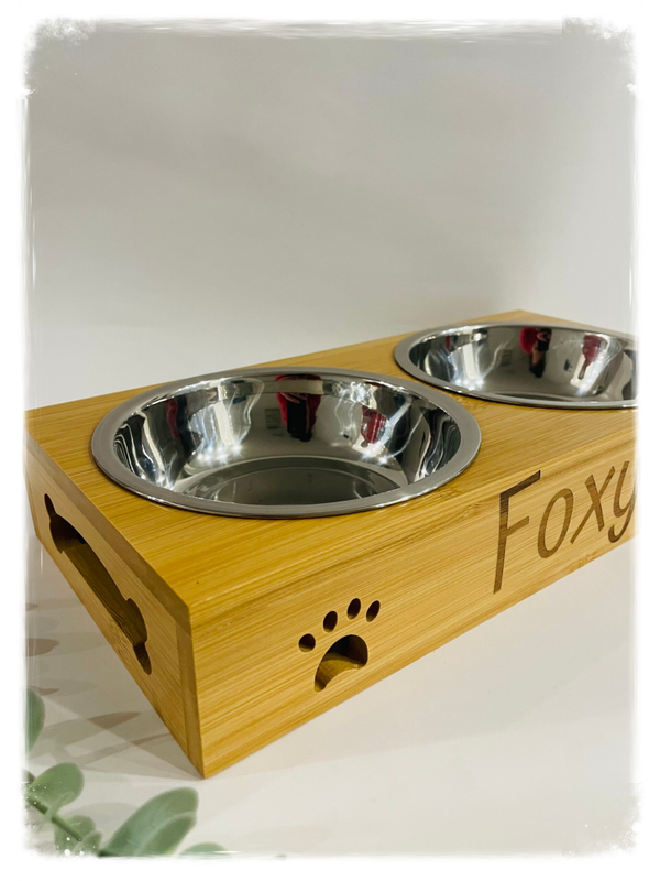 Comedero bebedero personalizado con nombre, para gatos y perros de raza pequeña/ mediana.
