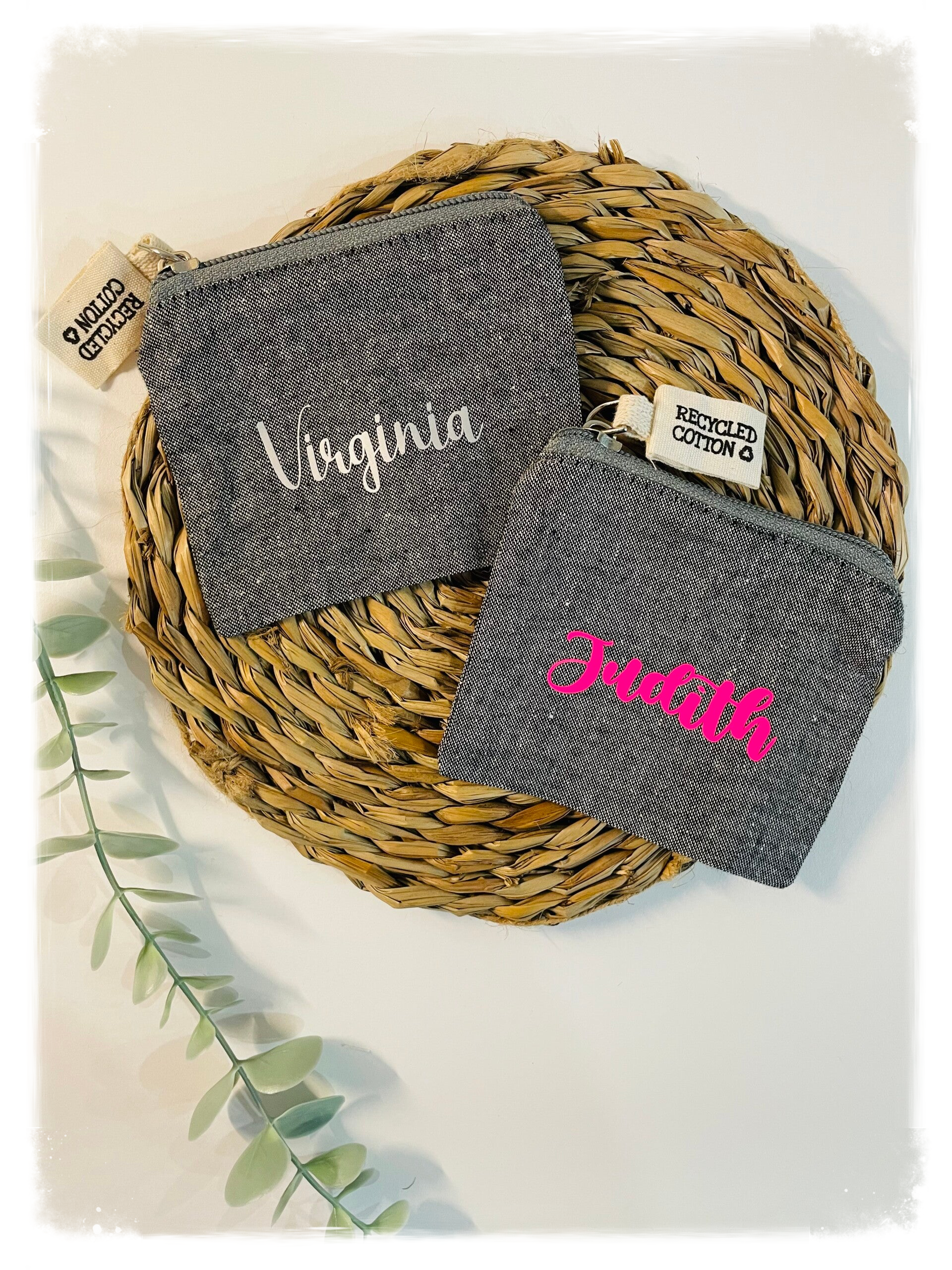 Monedero de algodón reciclado personalizado con vinilo textil.