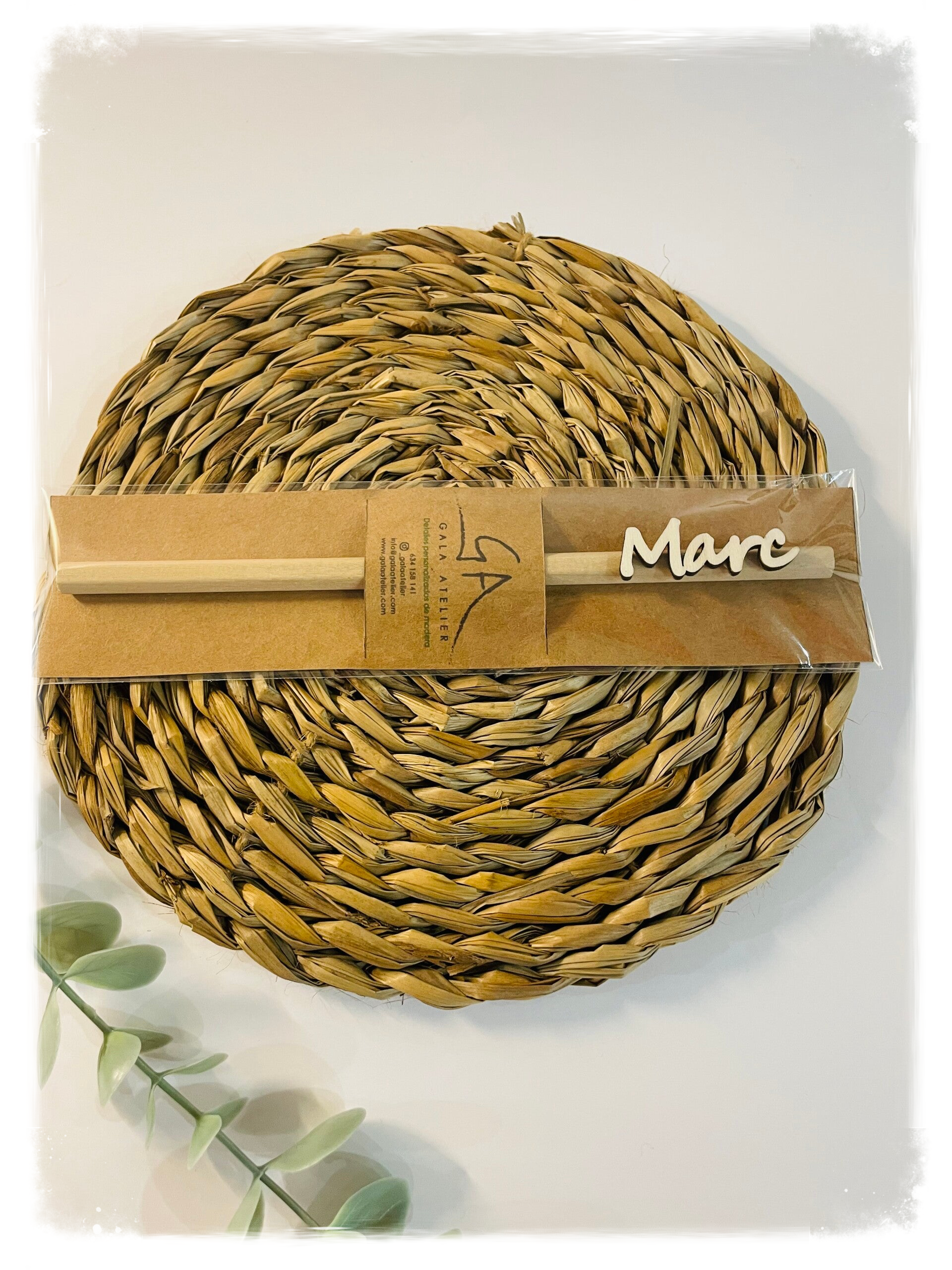 Se entrega envuelto con bolsita de celofán y un lacito, y se puede añadir una etiqueta de madera personalizada con el texto que desee, todo ello sin coste adicional.