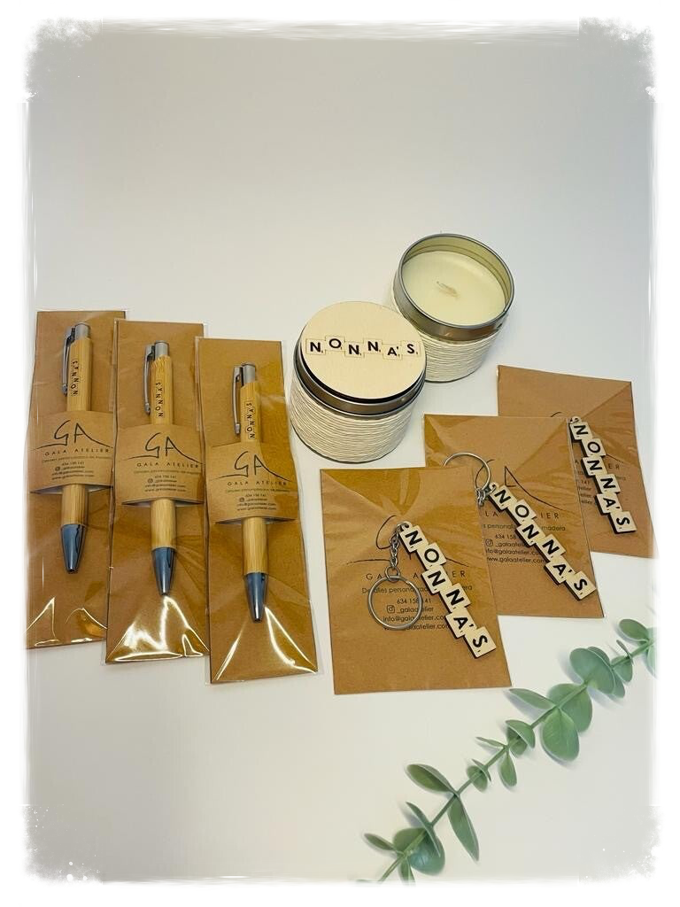 Vela en latita con tapa grabada personalizada de madera.