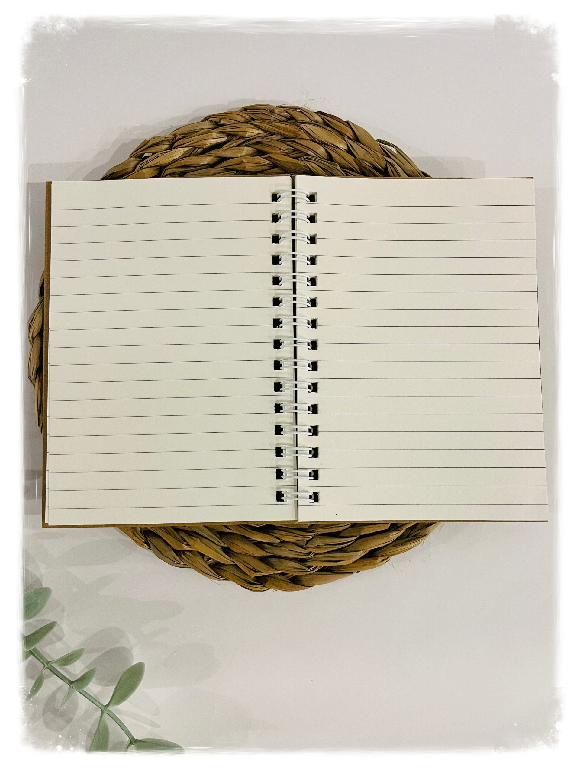 Libreta Kraft personalizada con nombre de madera y copo de nieve.