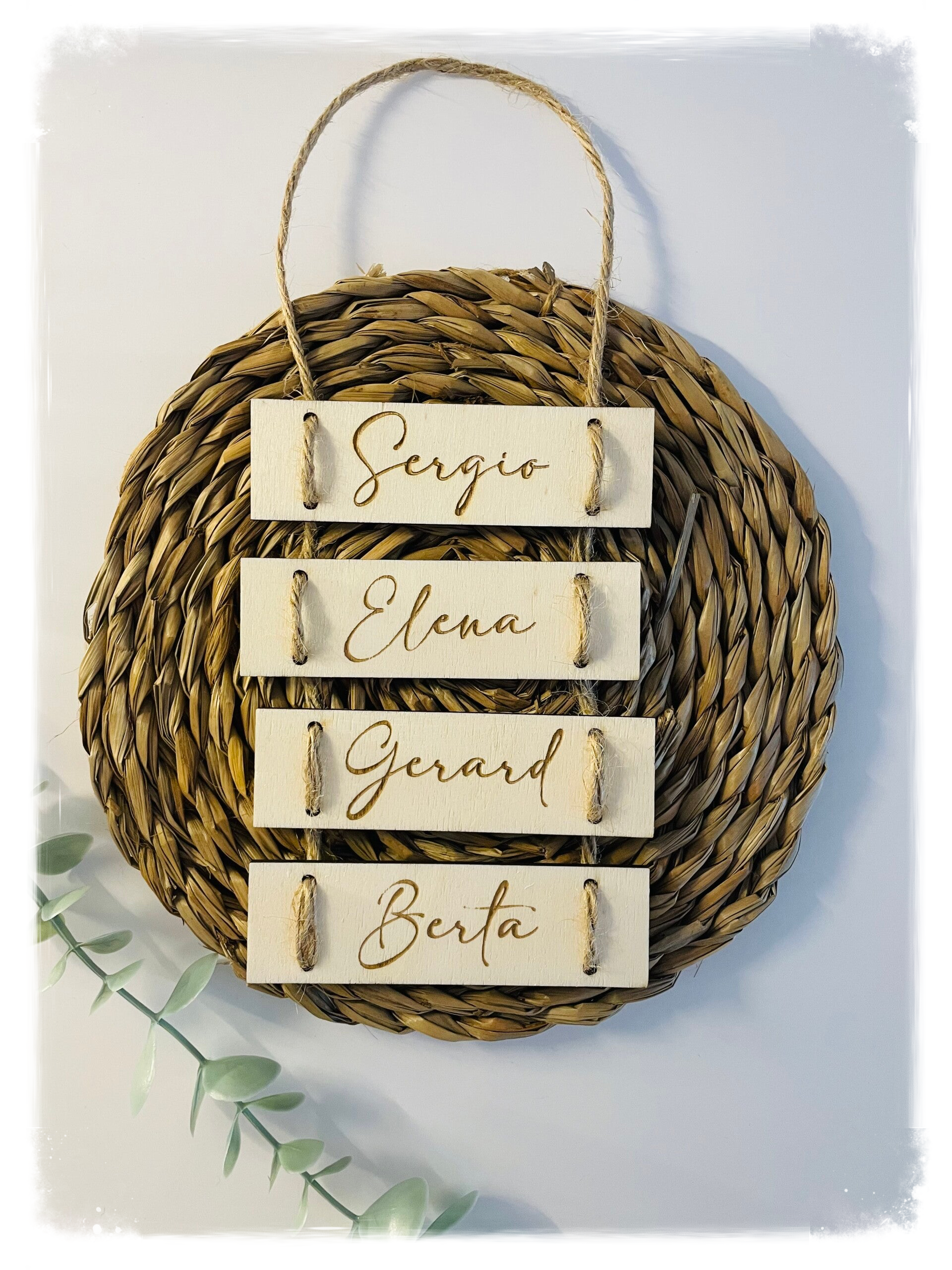 Placas de madera con cuerdas, para personalizar con nombres, palabras o frases.