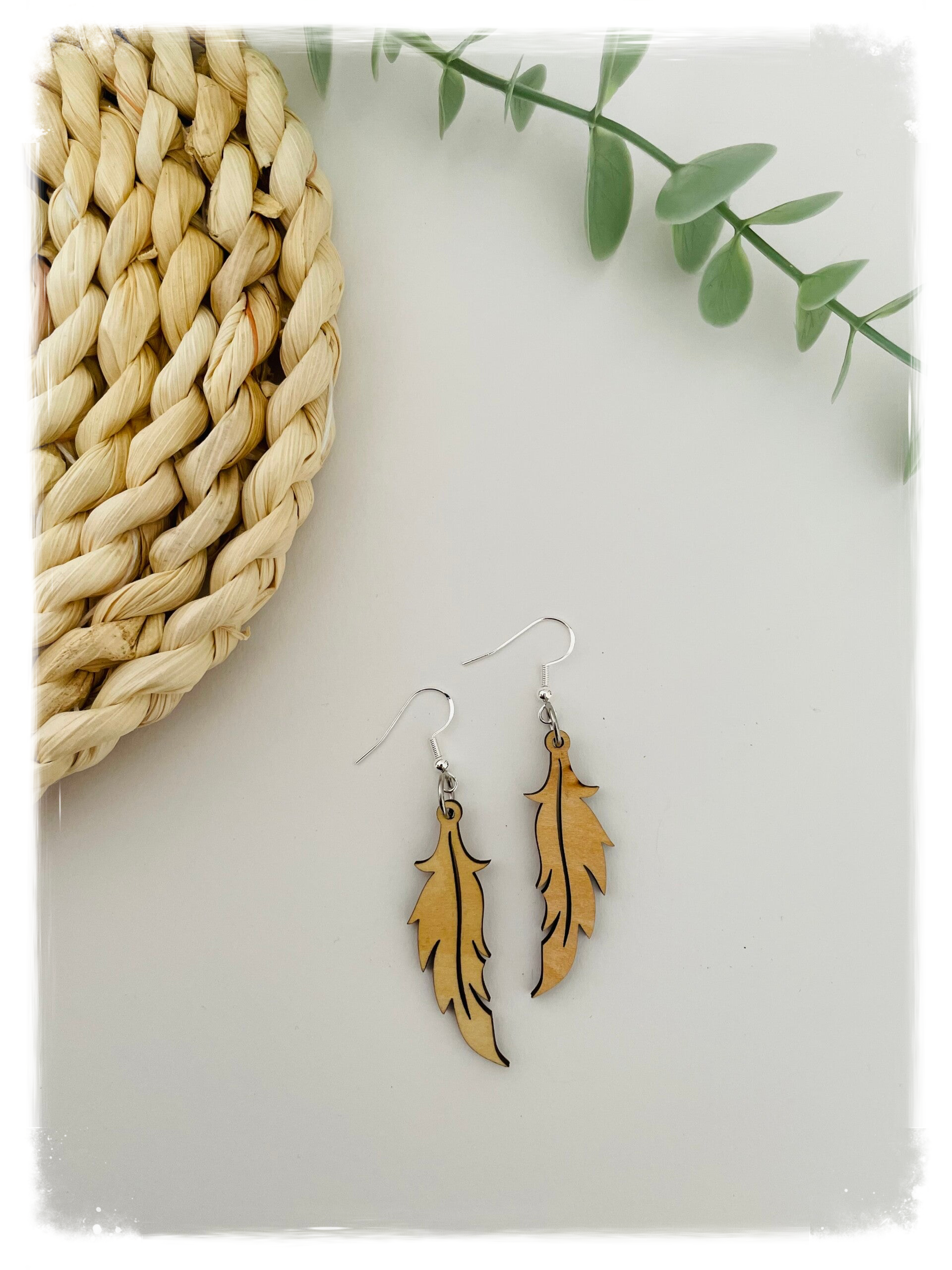 Pendientes artesanales fabricados con madera natural, con gancho de acero inoxidable quirúrgico.