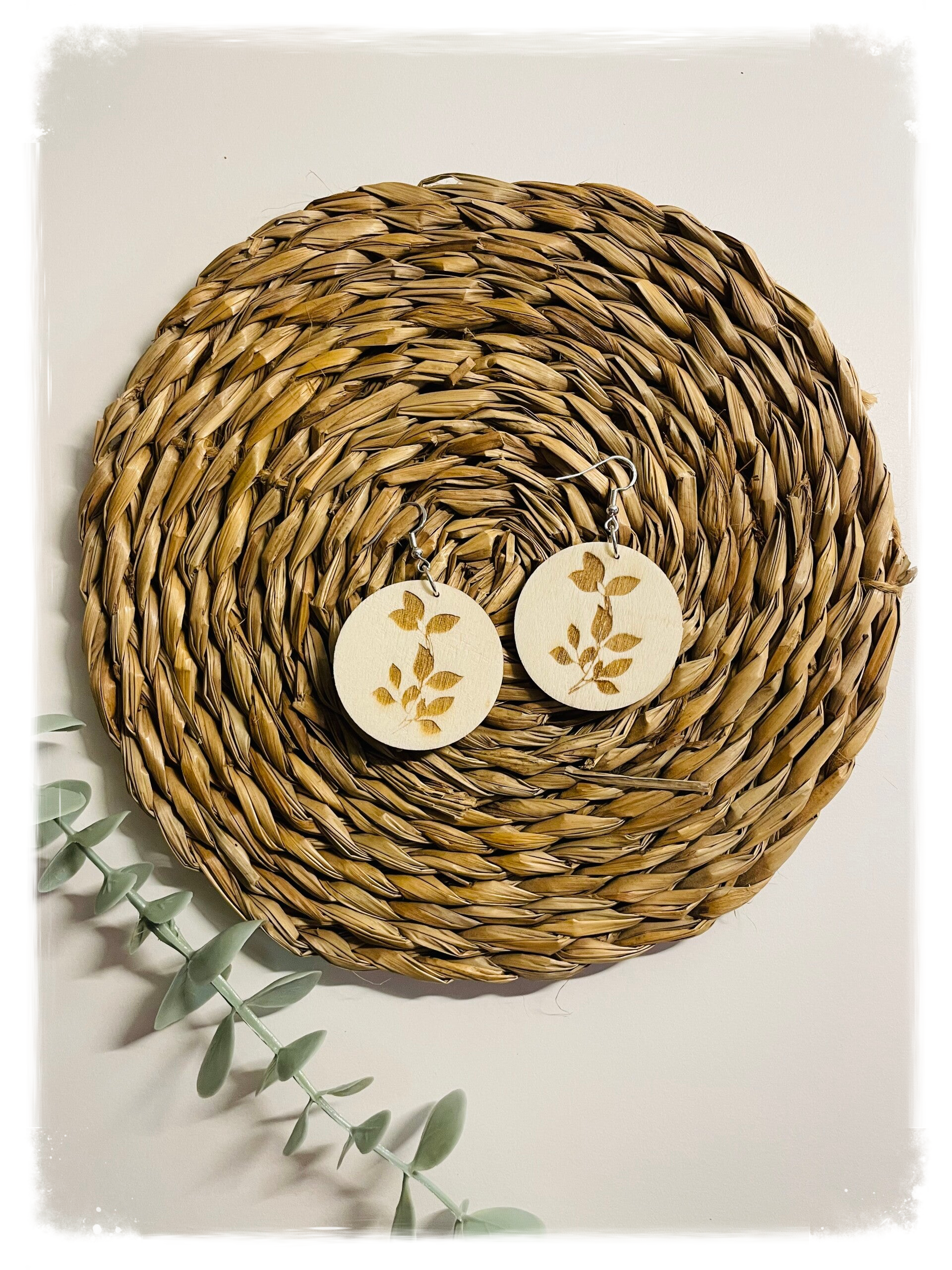 Pendientes artesanales fabricados con madera natural, con gancho de acero inoxidable quirúrgico.