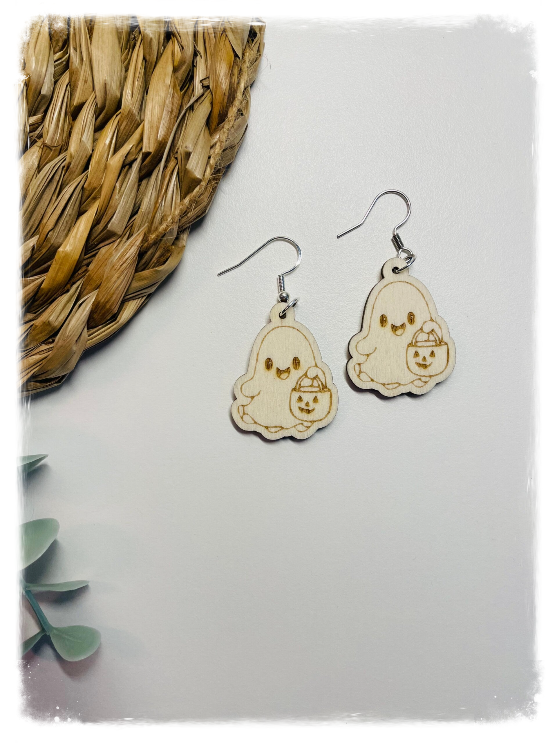 Pendientes artesanales fabricados con madera natural, con gancho de acero inoxidable quirúrgico.