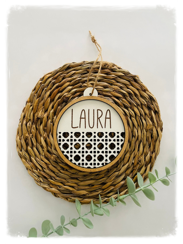 Bola de madera de Navidad de 10cm personalizada con nombre.
