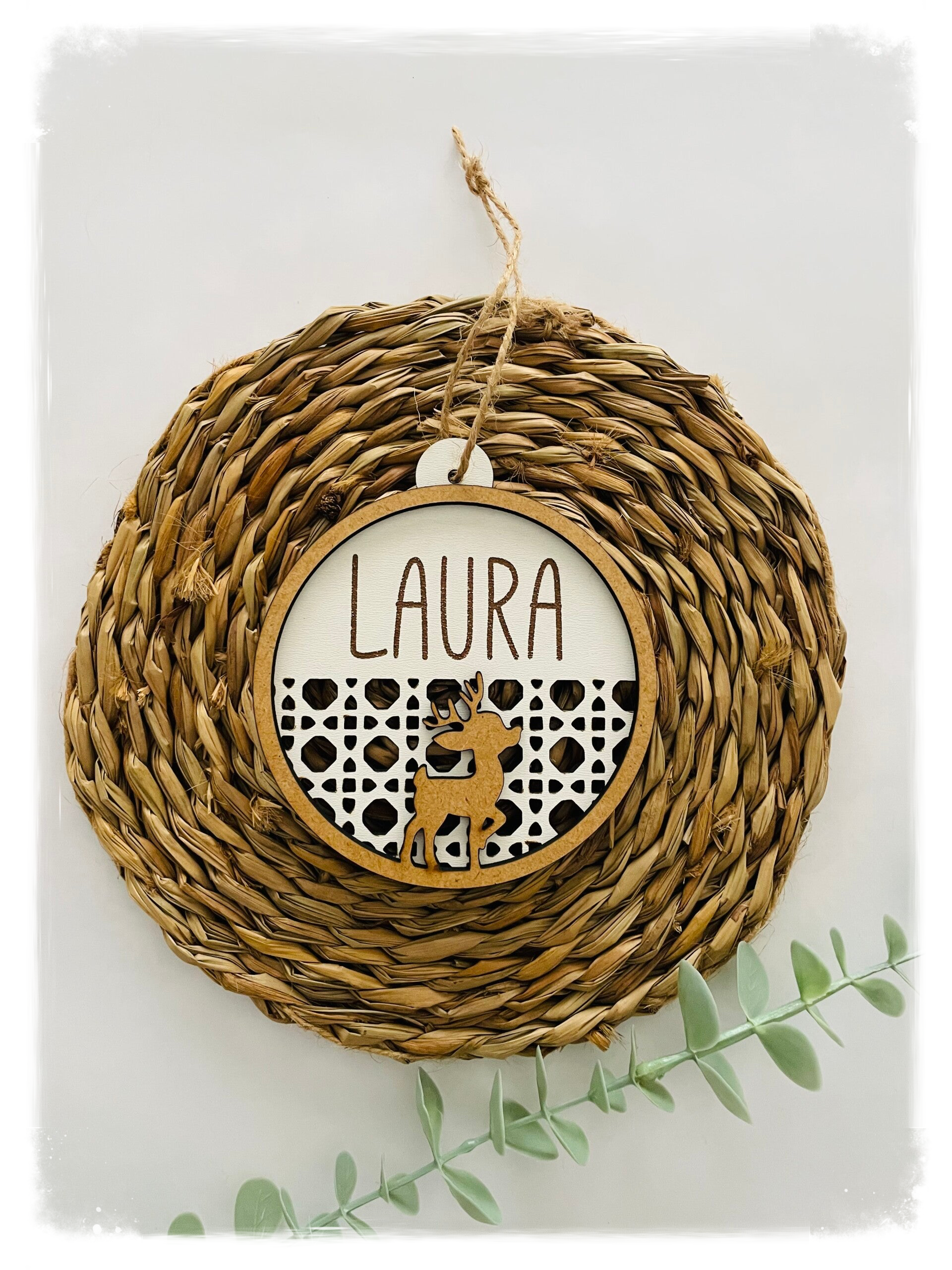 Bola de madera de Navidad de 10cm personalizada con nombre.