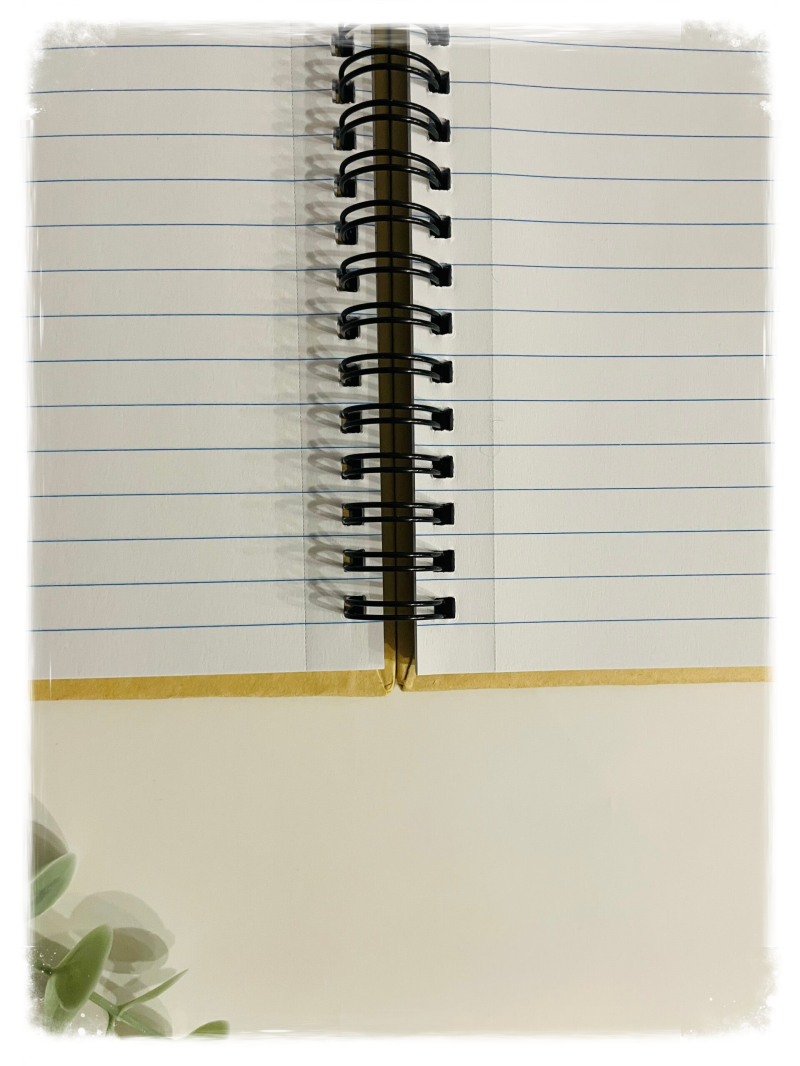 Libreta DINA5 en tono natural, con anillas negras y portada rígida, personalizable con inicial y nombre en vinilo adhesivo.