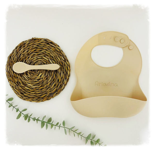 - Babero fabricado en suave y duradera silicona, personalizado con nombre.Con certificación LFGB, que respalda la seguridad y calidad de este babero, asegurando que es apto para estar en contacto con alimentos. Medidas: Largo 2 cm x Ancho 24 cm x Alto 25 cm