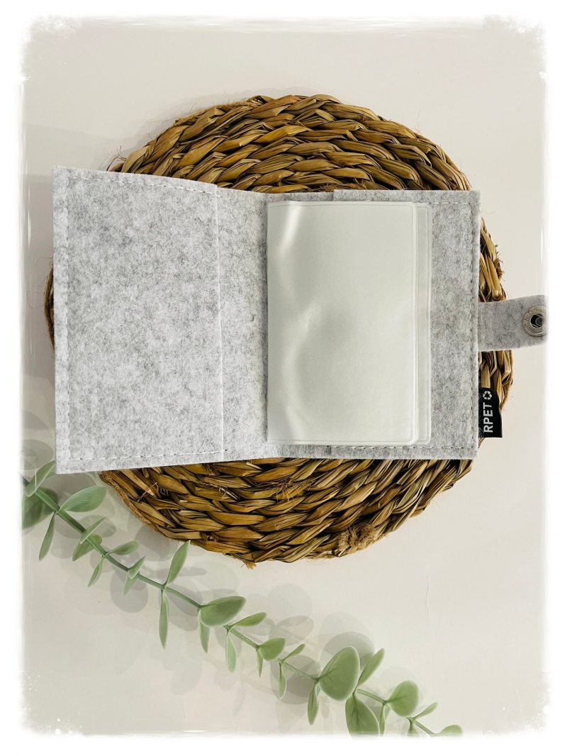 Tarjetero de fieltro poliéster RPET personalizado con vinilo téxtil.
