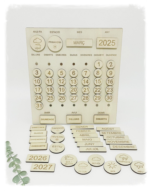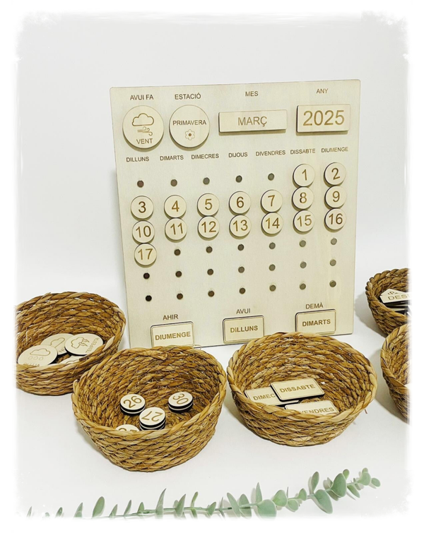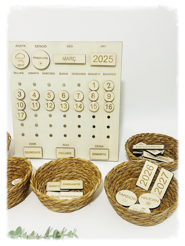 Calendario de madera imantado, personalizado en el idioma que desees.