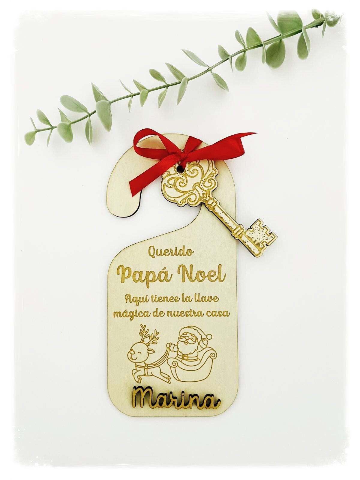 Llave mágica de madera para PAPÁ NOEL, para poder acceder a tu hogar, personalizada con nombre.