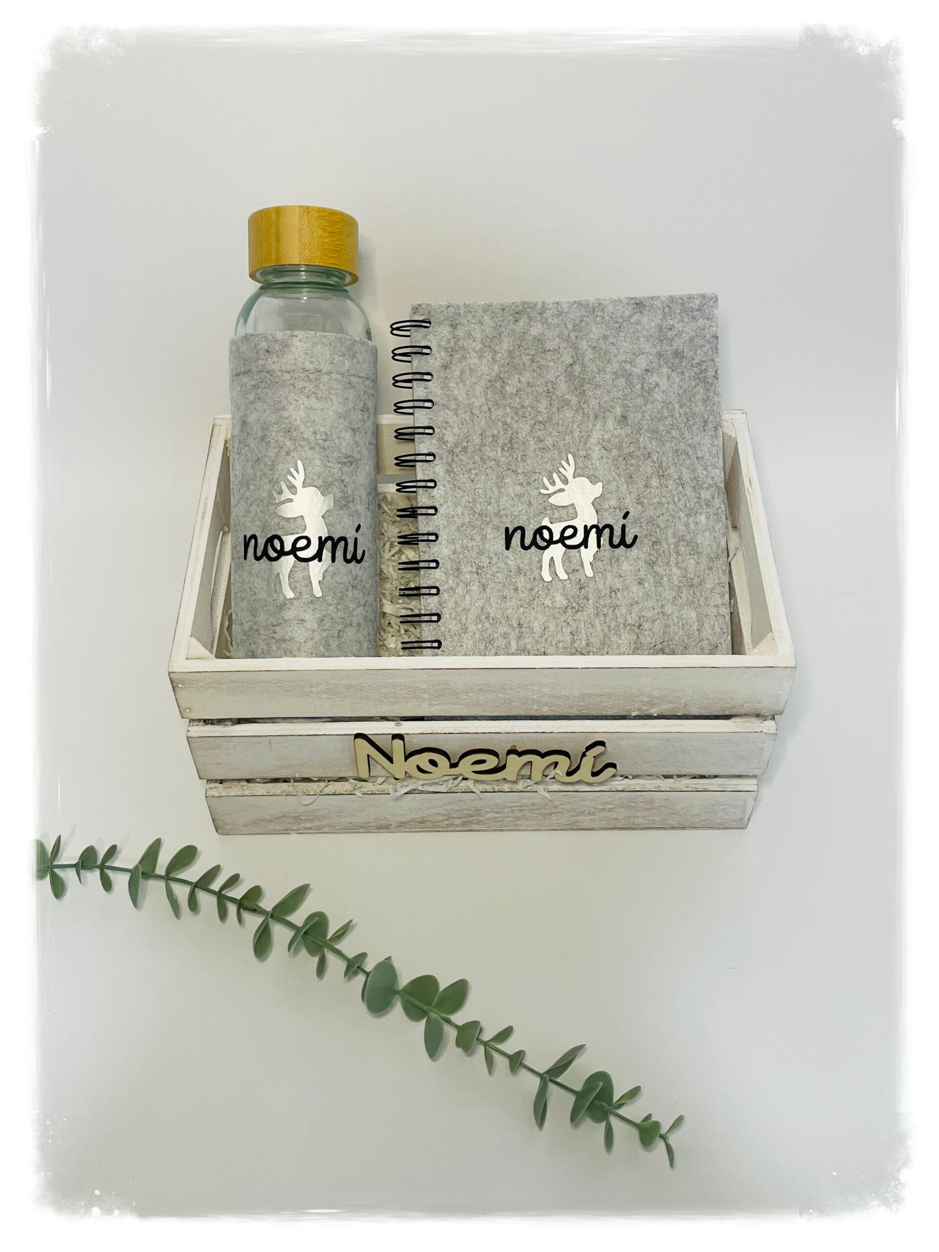 Pack personalizado con reno plateado y nombre con: