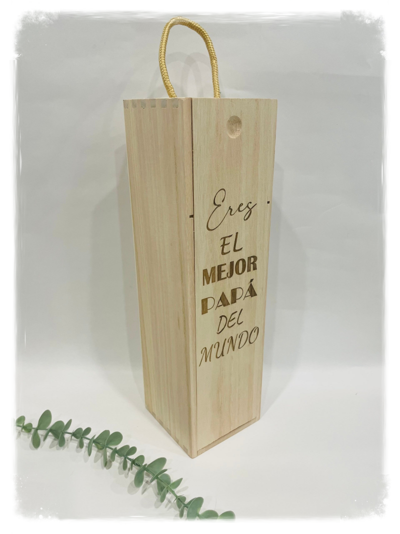 Caja de madera natural para botellas, personalizada con el texto que desee.