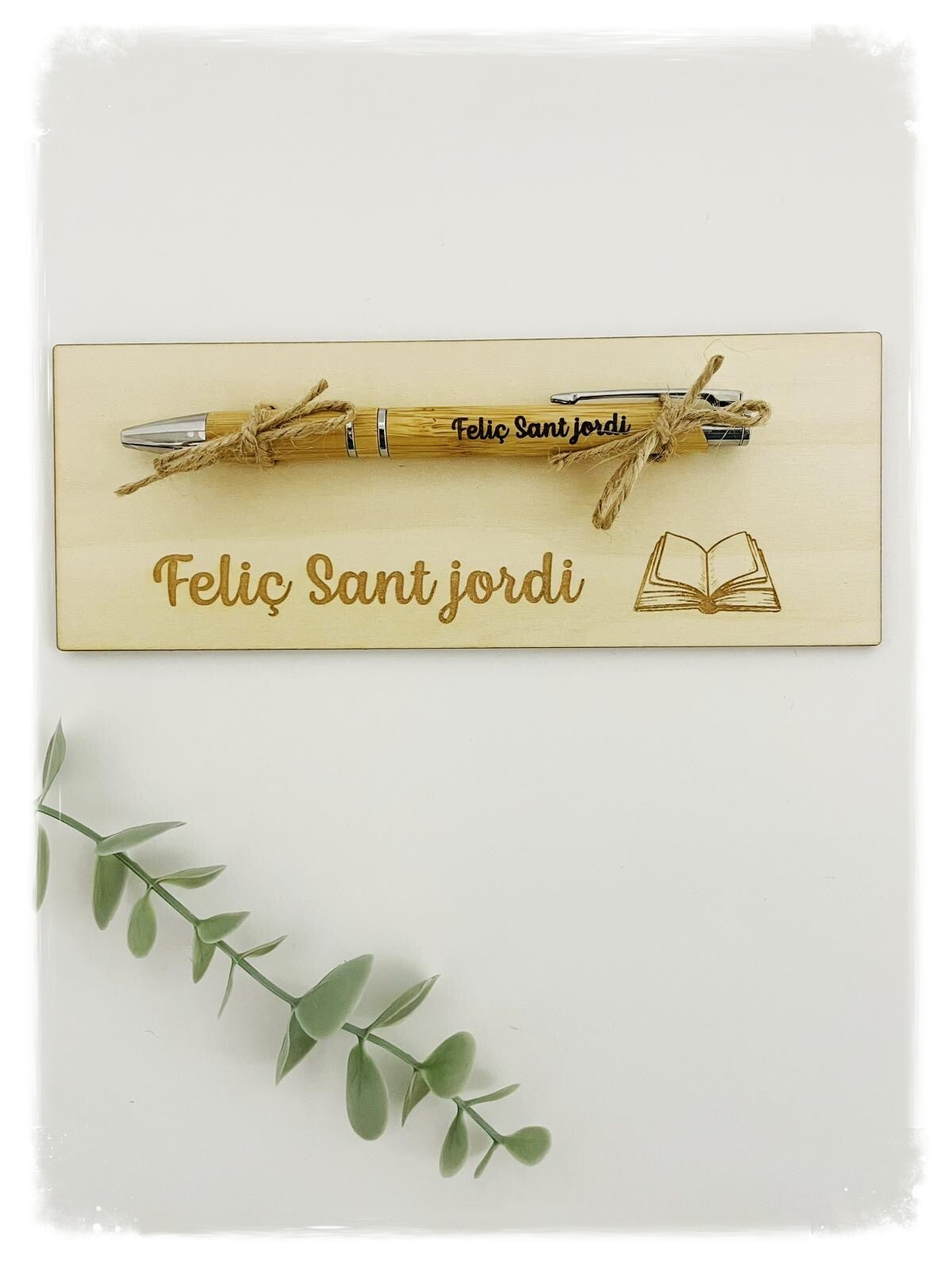 BOLÍGRAFO CON BASE DE MADERA SANT JORDI libro