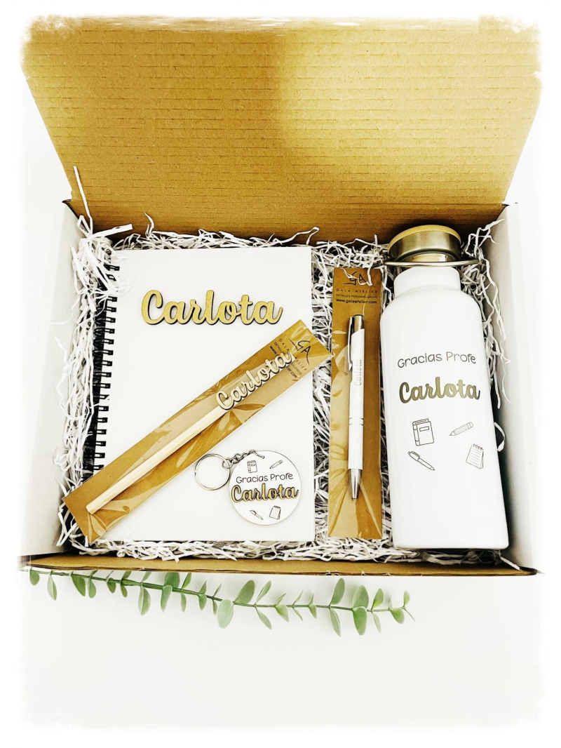 Pack personalizado para Profes, con caja de cartón, que incluye: